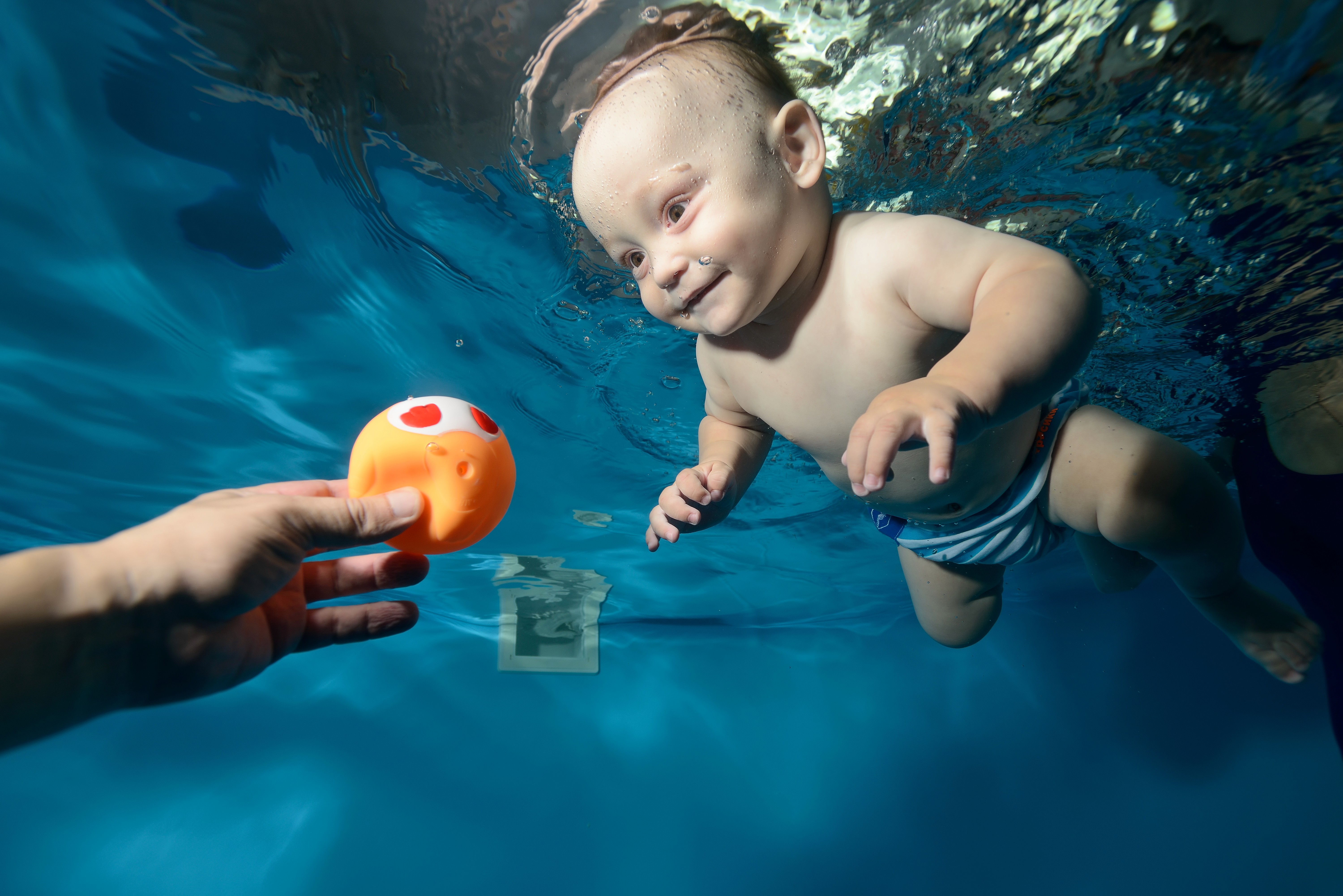 Our Playful Cuddles will be confident on their backs floating and will have mastered word association “ready go” before submersions. Introducing monkeying around the pool, jumping off the big float and the life skill of holding onto poolside. Learning through play and actions to our nursery rhymes your Playful Cuddle will have lots of fun and enjoy trying new things.